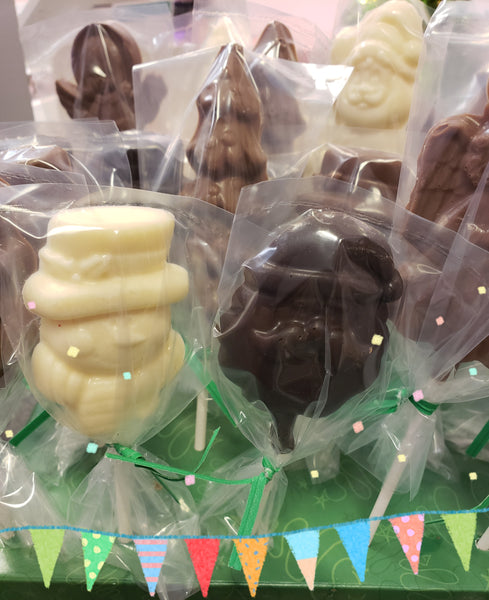 Assorted Christmas and Holiday shapes, our Chocolate pops make great stocking stuffers or gift toppers.